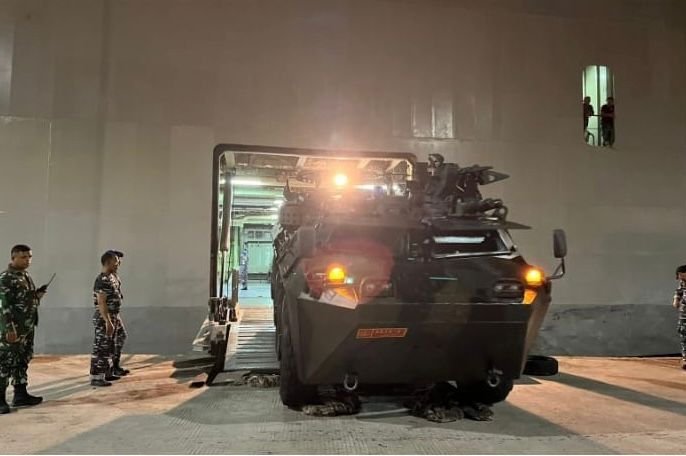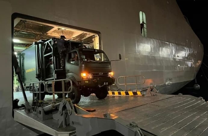 Setelah proses sandar dermaga usai, KRI BJM-592 langsung melaksanakan debarkasi personel dan materiil dari satuan-satuan TNI diantaranya dari Pasukan Pengamanan Presiden (Paspampres), Satuan Komunikasi dan Elektronika (Satkomlek) serta Satuan Siber (Satsiber).