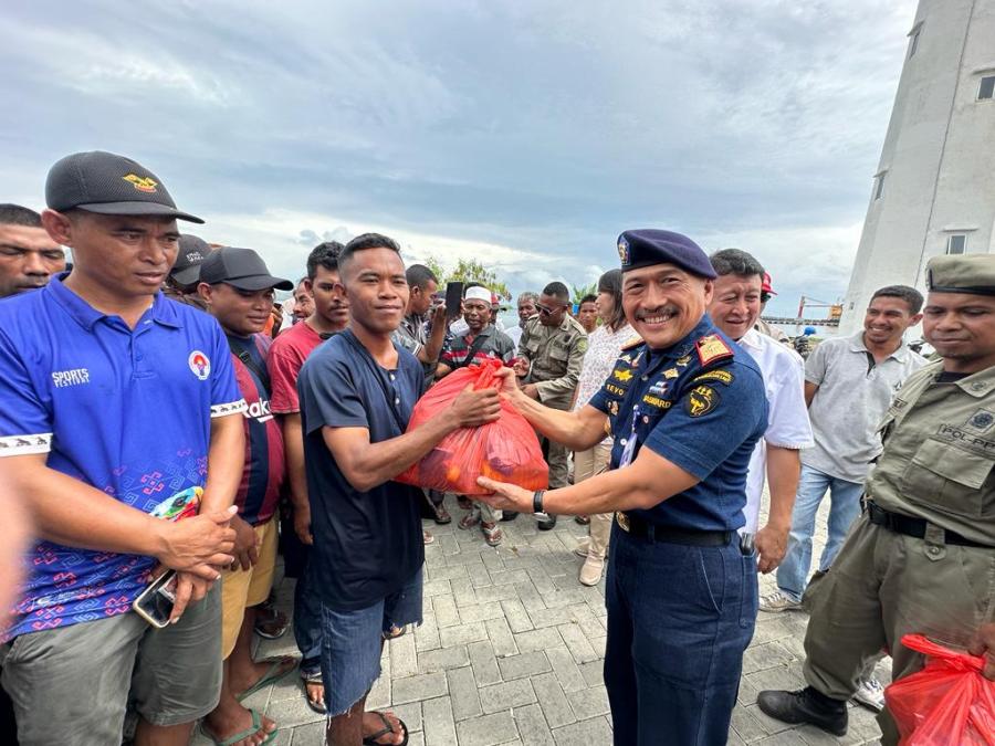 Sebagai bentuk apresiasi, Direktorat Jenderal Perhubungan Laut Kementerian Perhubungan memberikan bantuan 1.000 paket sembako yang diserahkan langsung oleh Direktur Kesatuan Penjagaan Laut dan Pantai (KPLP), Rivolindo kepada para nelayan didampingi oleh Wakil Bupati Manggarai Barat, Yulianus Weng di Labuan Bajo, hari ini Selasa (9/5/2023).