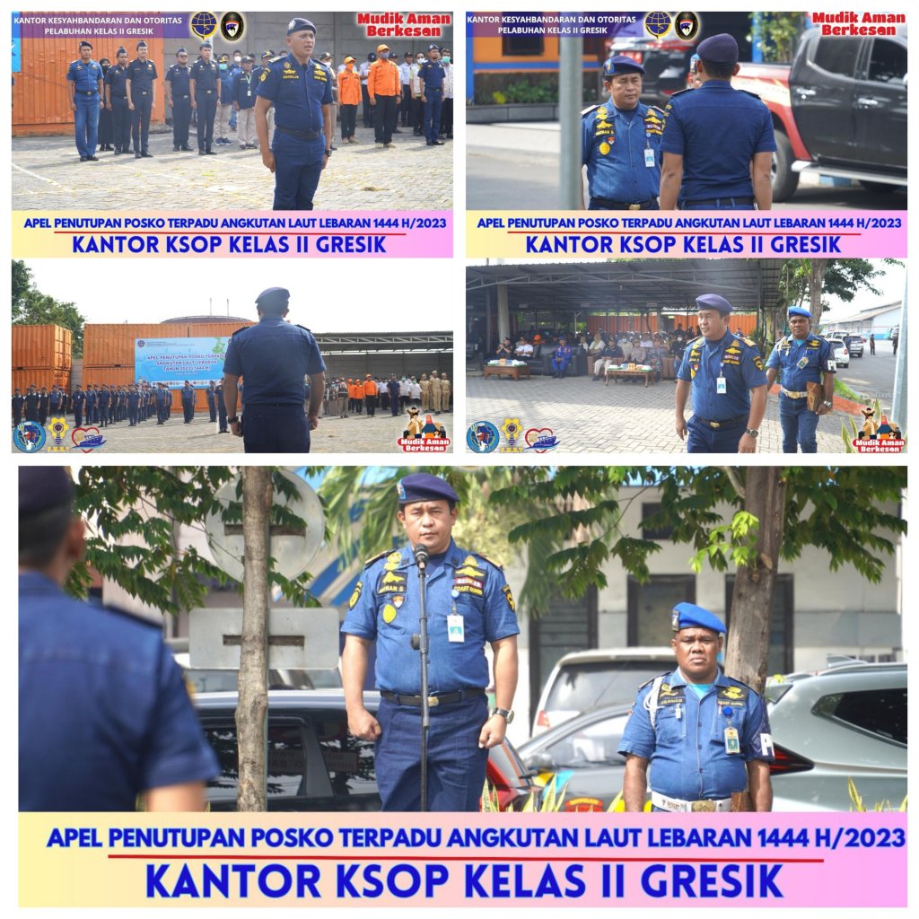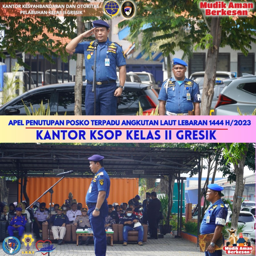 Kementerian Perhubungan Cq Direktorat Jenderal Perhubungan Laut melalui Kantor Kesyahbandaran dan Otoritas Pelabuhan (KSOP) Kelas II Gresik secara resmi telah menutup posko Angkutan Laut Lebaran (Angleb) tahun 2023, berlangsung selama 32 hari mulai dari tanggal 7 April hingg 8 Mei 2023.