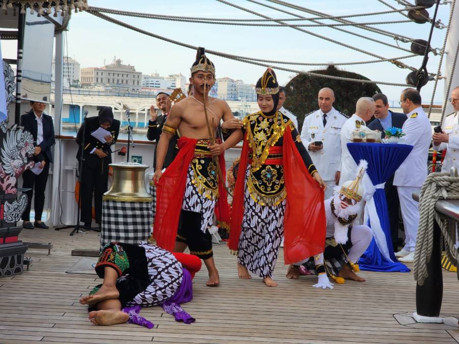 Selain tari – tarian, para tamu undangan juga dimanjakan dengan kelezatan berbagai macam hidangan khas Indonesia yang diolah oleh juru masak kapal latih layar tiang tinggi kebanggaan Indonesia ini seperti sate ayam, bakso, nasi goreng, mie goreng, dan sajian makanan nusantara lainnya. Tampak antusiasme para tamu undangan yang larut dalam acara yang penuh persahabatan tersebut.