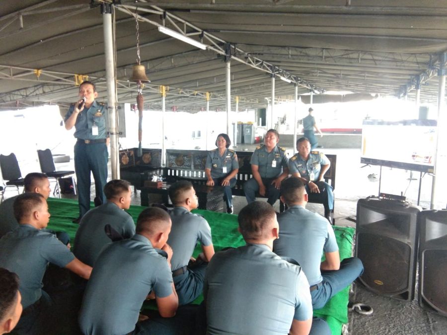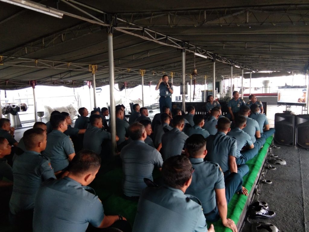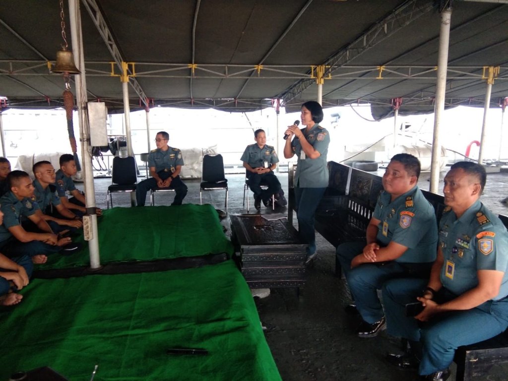 Prajurit KRI Teluk Amboina-503 yang tengah sandar di dermaga Mako Kolinlamil Tanjung Priok, Jakarta Utara menerima penyuluhan hukum dari Dinas Hukum Kolinlamil, Kamis (15/6/2023). Kegiatan penyuluhan hukum ini dibuka oleh Kepala Dinas Hukum Kolinlamil Kolonel Laut (H/W) Roslin Panjaitan. Penyuluhan hukum ini dilaksanakan sebagai bagian dari pembinaan personel guna menumbuhkan kesadaran dan pemahaman hukum bagi seluruh personel Kolinlamil, khususnya prajurit TNI AL yang berdinas di Kapal Perang.
