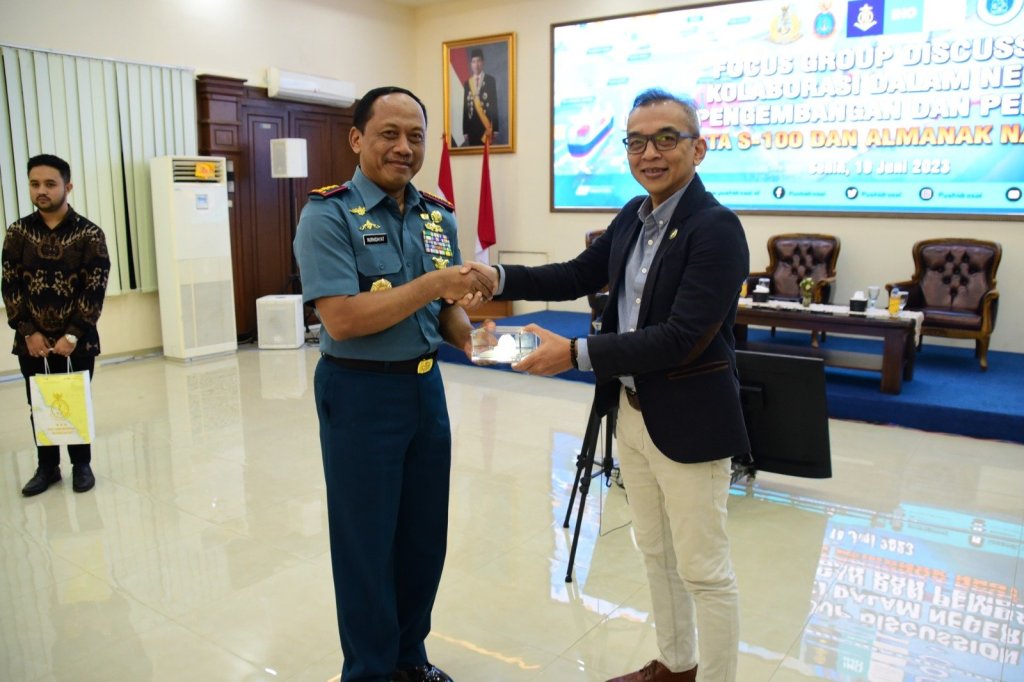 Pusat Hidro-Oseanografi TNI Angkatan Laut (Pushidrosal) menggelar Fokus Group Discussion (FGD) Data S-100 dan Almanak Nautika bertempat di ruang serbaguna Mako Pushidrosal, Jakarta Utara, Senin (19/6/2023).