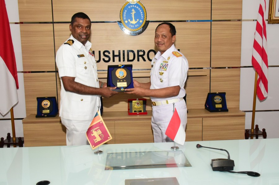 Pusat Hidro Oseanografi TNI AL (Pushidrosal) menerima Courtesy Call Athan Srilanka Captain (Navy) Chaminda Karunasena yang didampingi staf Governments International Relations Kedubes Srilanka Aldila Putra Ramadhan.
