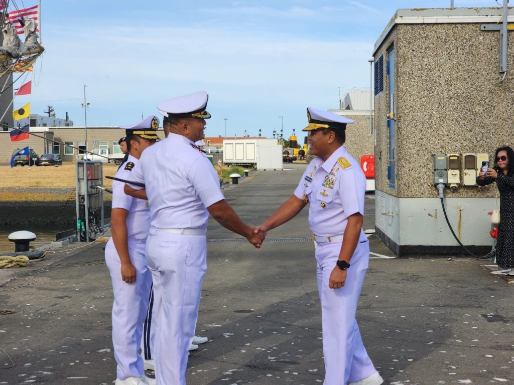 Rasa bangga dan haru tampak terpancar diseluruh personel Satuan Tugas Kartika Jala Krida (Satgas KJK) 2023, saat Kepala Staf Angkatan Laut (Kasal) Laksamana TNI Muhammad Ali menyambut langsung kedatangan KRI Bima Suci dalam rangka misi pelayaran diplomasi dan duta bangsa Kartika Jala Krida 2023 di Geplaateste Speld Naval Base, Den Helder, Belanda pada Selasa (27/6/2023).