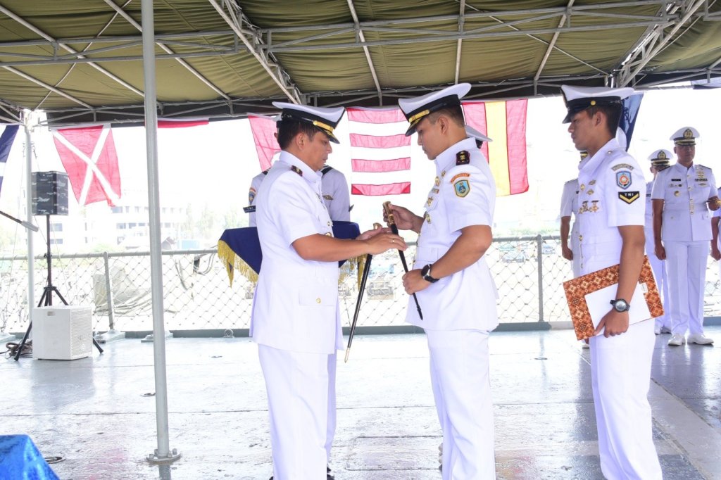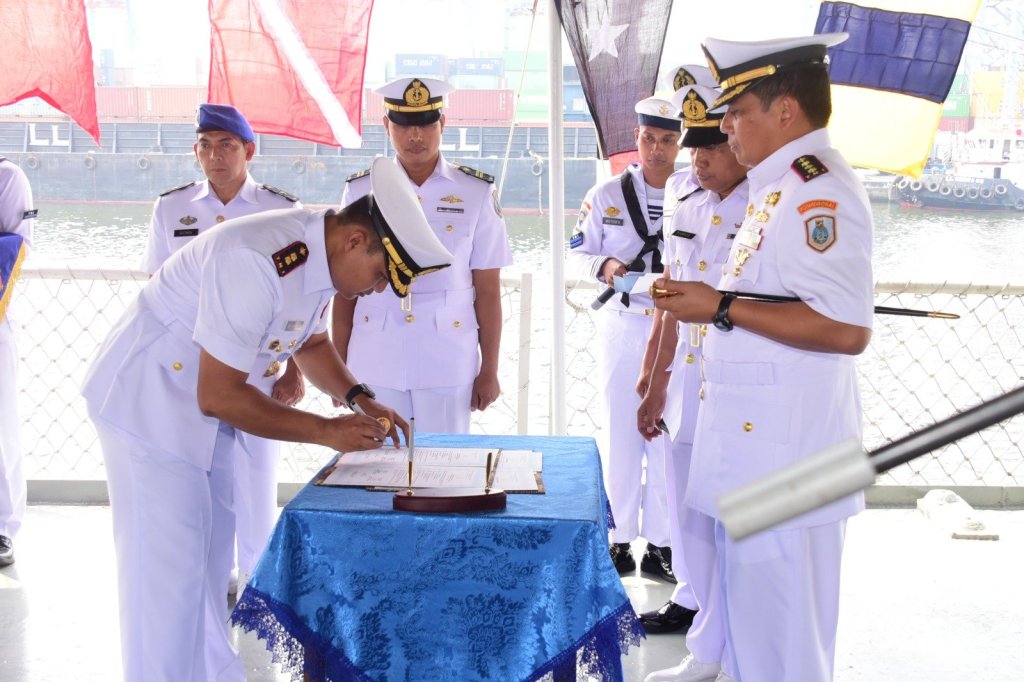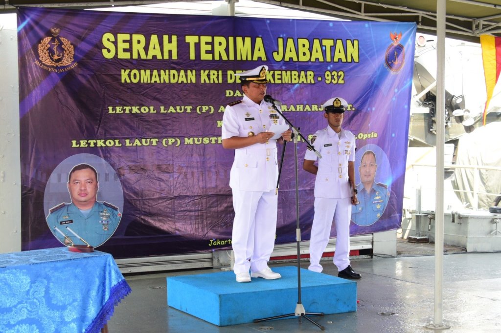 Acara serah terima jabatan Komandan KRI DKB – 932 dari pejabat lama Letkol Laut (P) Arif Budi Raharjo kepada pejabat baru Letkol Laut (P) Mustika Ariwibowo Agus Tetuko dilanjutkan dengan pengambilan sumpah jabatan dan penandatanganan pakta integritas pejabat Komandan KRI DKB-932 yang baru.