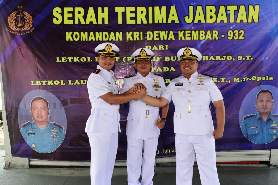 Acara serah terima jabatan Komandan KRI DKB – 932 dari pejabat lama Letkol Laut (P) Arif Budi Raharjo kepada pejabat baru Letkol Laut (P) Mustika Ariwibowo Agus Tetuko dilanjutkan dengan pengambilan sumpah jabatan dan penandatanganan pakta integritas pejabat Komandan KRI DKB-932 yang baru.