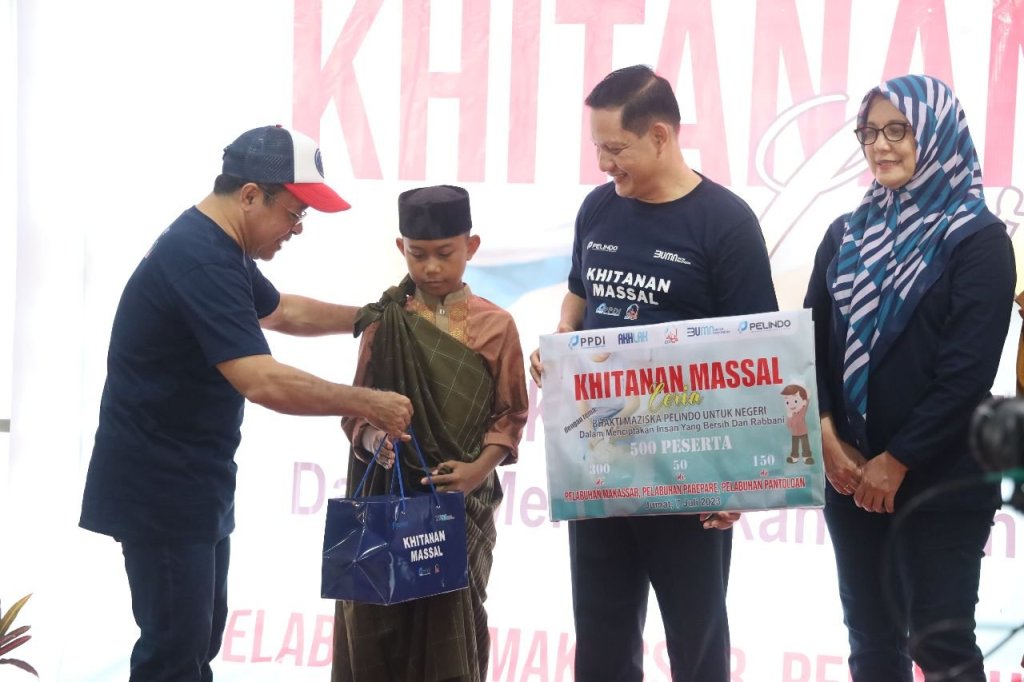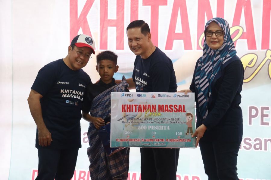 PT Pelabuhan Indonesia (Persero) atau Pelindo melalui Pusat Pembinaan Dakwah Islam (PPDI) menggelar kegiatan Khitanan Massal Ceria dengan mengusung tema “Bhakti Maziska Pelindo untuk Negeri Dalam Menciptakan Insan yang Bersih dan Rabbani” serentak di tiga cabang di Regional 4, yakni Pelabuhan Makassar, Pelabuhan Parepare, dan Pelabuhan Pantoloan, Jumat (7/7/2023).