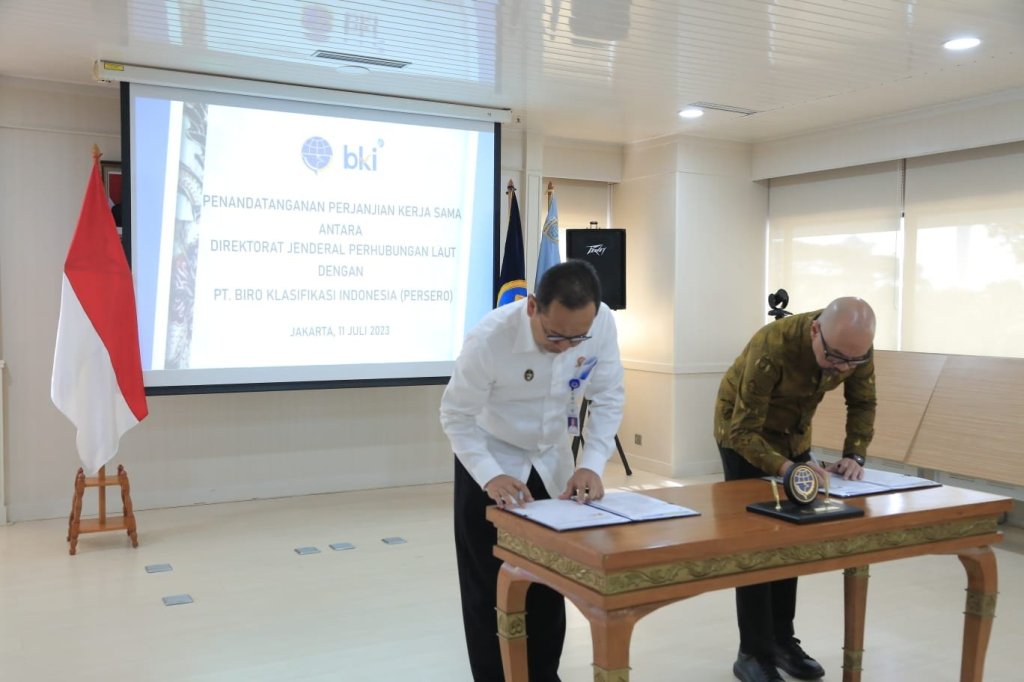 Perpanjangan pendelegasian kewenangan tersebut ditandai dengan dilakukannya Penandatanganan Perpanjangan Perjanjian Kerjasama antara Direktur Jenderal Perhubungan Laut Arif Toha dengan Direktur Utama PT. BKI Arisudono, terkait kewenangan survey dan sertifikasi statutoria kapal berbendera Indonesia bertempat di Ruang Sriwijaya, Selasa (11/7/2023).