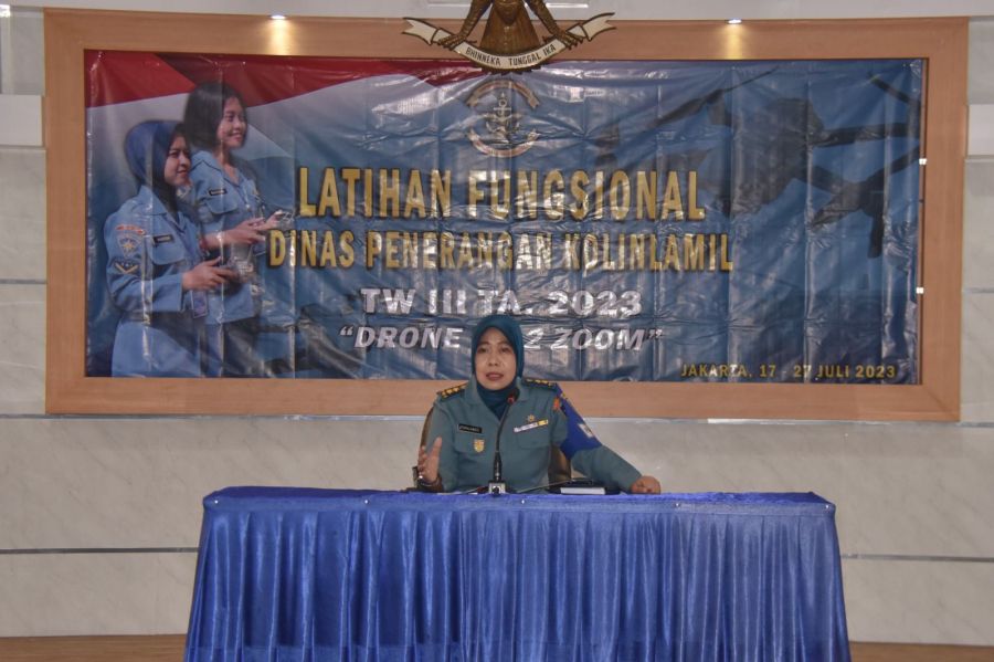 Dalam rangka mendukung fungsi Penerangan di jajaran Komando Lintas Laut Militer, khususnya dalam aspek dokumentasi dan publikasi secara visual, Dinas Penerangan Kolinlamil menggelar latihan fungsional Triwulan III tahun 2023 dengan memfokuskan materi berupa pelatihan Pilot Drone. Latihan yang akan berlangsung dalam beberapa hari ke depan dibuka oleh Kepala Sub Dinas Penerangan Umum Dinas Penerangan Kolinlamil Letkol Laut (KH/W) Romalawati mewakili Kepala Dinas Penerangan Kolinlamil Kolonel Laut (P) M Yunianto di gedung Laut Natuna, Mako Kolinlamil, Tanjung Priok, Jakarta Utara, Senin (17/7/2023).