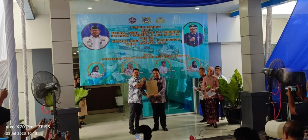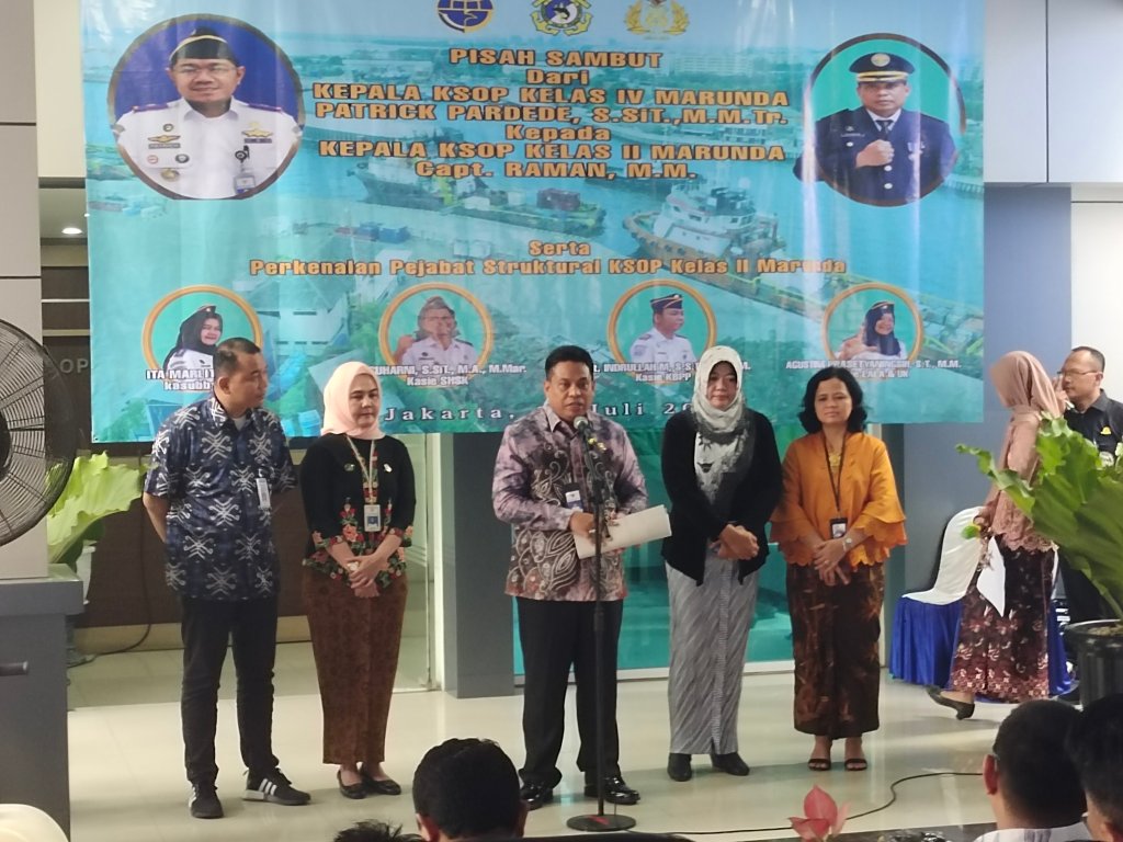 Kantor Kesyahbandaran dan Otoritas Pelabuhan (KSOP) Kelas II Marunda menggelar acara pisah sambut pejabat lama Kepala KSOP Marunda Kelas IV Patrick Pardede, S.S.iT, M.M.Tr kepada pejabat baru Kepala KSOP Kelas II Capt.Rahman M.M. bertempat di Kantor Kesyahbandaran dan Otoritas Pelabuhan Kelas II Marunda, Jakarta Utara,Selasa (25/7/2023.
