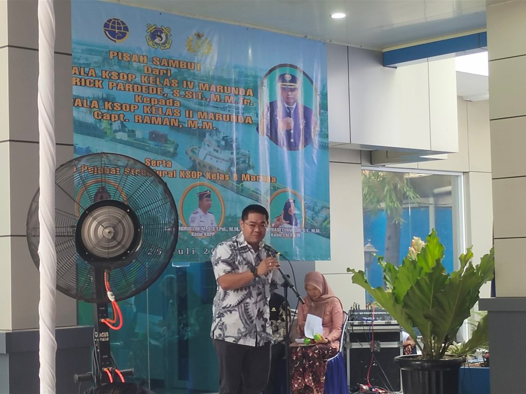Kepala KSOP Kelas IV Marunda Patrick Pardede, S.S.iT, M.M.Tr dalam sambutannya mengatakan kalau ada pertemuan tentu ada perpisahan juga, jadi kami datang menjabat di Kantor KSOP Marunda karena Surat Keputusan (SK) dan pergi atau pulang karena cinta, itu lah bagi kita yang bertugas sebagai ASN.