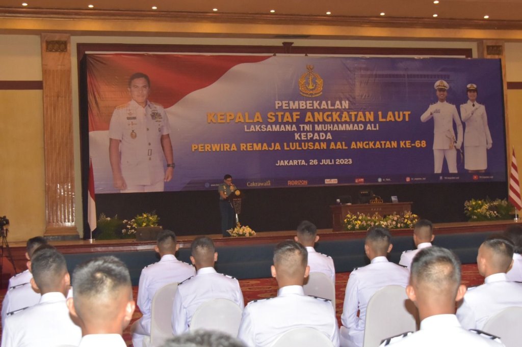 Kegiatan pembekalan kepada Para AAL tersebut turut dihadiri oleh Ketua Gabungan Jalasenastri Ny. Fera Muhammad Ali, Pejabat Utama Mabesal, Pimpinan Kotama TNI AL diantaranya adalah Panglima Komando Lintas Laut Militer Laksda TNI Edwin, S.H., M.Han, M.H. Dalam arahannya, Kasal menyampaikan bahwa acara pembekalan ini bertemakan “Paja AAL -68 Generasi Penerus Pemimpin Bangsa di Era Indonesia Emas 2045”.