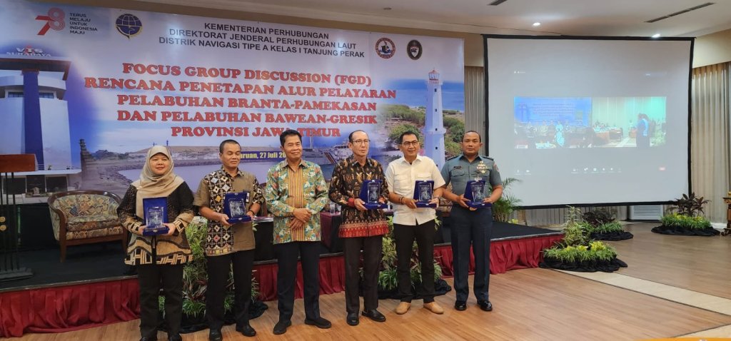 FGD kali ini menghadirkan para narasumber dari Distrik Navigasi Tipe A Kelas I Tanjung Perak, terkait Survey hidro-oceanografi dalam rangka rencana penetapan alur-pelayaran masuk pelabuhan Branta-Pamekasan dan Pelabuhan Bawean, Direktorat kepelabuhanan terkait dukungan data dan informasi rencana pengembangan pelabuhan Branta-Pamekasan dan Bawean, Pushidrosal terkait pentingnya penggambaran alur-pelayaran masuk pelabuhan Branta-Pamekasan dan Pelabuhan Bawean pada Peta Laut Indonesia, dan Direktorat Kenavigasian terkait proses penetapan alur-pelayaran, sistem rute, tata cara berlalu lintas, dan daerah labuh kapal sesuai dengan kepentingannya di alur-pelayaran masuk pelabuhan Branta-Pamekasan dan Pelabuhan Bawean.