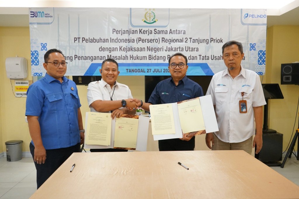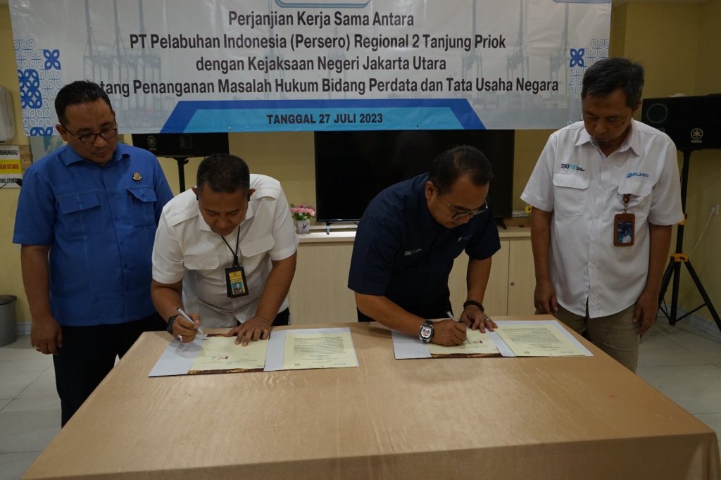 PT Pelabuhan Indonesia (Persero) Regional 2 Tanjung Priok bersama Kejaksaan Negeri Jakarta Utara, Kamis (27/7/2023) yang lalu melakukan Perjanjian Kerja Sama tentang Penanganan Masalah Hukum Bidang Perdata Dan Tata Usaha Negara. Penandatanganan Perjanjian Kerja Sama dilakukan oleh General Manager (GM) PT Pelabuhan Indonesia (Persero) Regional 2 Tanjung Priok Adi Sugiri dan Kepala Kejaksaan Negeri Jakarta Utara Atang Pujiyanto, S.H., M.H.,