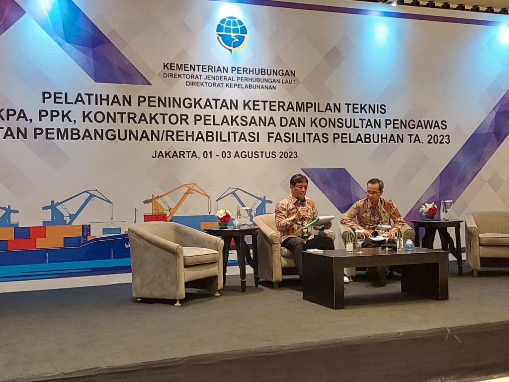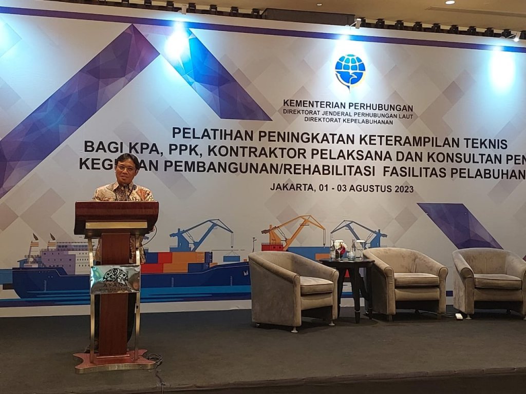 Demikian disampaikan Direktur Kepelabuhanan Muhammad Masyhud saat membacakan sambutan Pelaksana Tugas (Plt) Direktur Jenderal Perhubungan Laut pada acara Pelatihan Peningkatan Keterampilan Teknis Bagi Kuasa Pengguna Anggaran (KPA), Pejabat Pembuat Komitmen (PPK), Kontraktor Pelaksana dan Konsultan Pengawas Kegiatan Pembangunan Fasilitas Pelabuhan TA. 2023 di Hotel Ayana Midplaza Jakarta, Rabu (2/8/2023).