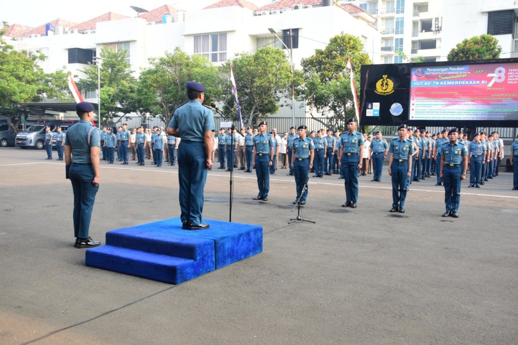 Komandan Pusat Hidro-Oseanografi TNI Angkatan Laut (Danpushidrosal) Laksamana Madya TNI Nurhidayat memimpin tradisi penerimaan Perwira Remaja Akademi Angkatan Laut (Paja AAL) Angkatan ke-68 bertempat di lapangan apel Mako Pushidrosal, Ancol Timur, Jakarta Utara, Senin (7/8/2023).