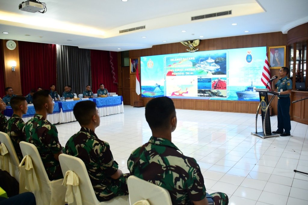 Pushidrosal yang diwakili oleh Kadisinfolahta Pushidrosal Kolonel Laut (KH) Budi Susanto menerima kunjungan siswa Advanced Nautical Operation Monitoring and Analysis Exercise (Anomalyx) Puskodal TNI AL TA 2023, bertempat di Lounge Room Perwira Pushidrosal, Jakarta Utara, Kamis, (10/8/2023).