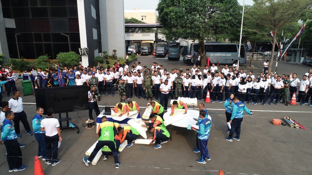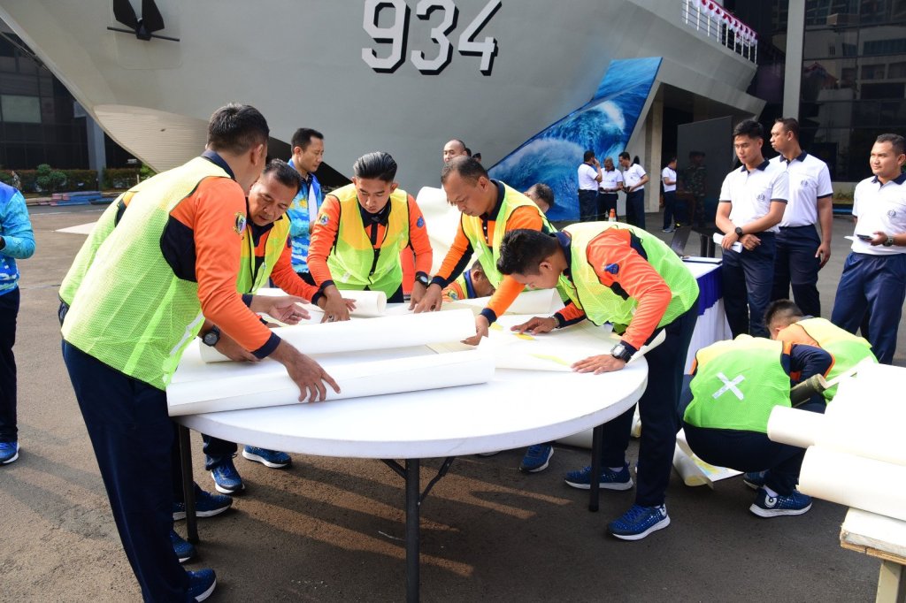 Jelang peringatan Hari Kemerdekaan Indonesia, Pusat Hidro-Oseanografi TNI Angkatan Laut (Pushidrosal) menggelar Lomba Regu Ton Tangkas Hidrografi di lapangan apel Pushidrosal, Jakarta Utara, Jumat, (11/8/2023).