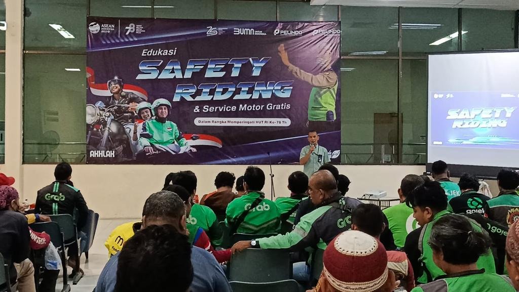 Dalam rangka menyemarakkan peringatan Hari Ulang Tahun (HUT) Ke-78 Kemerdekaan Republik Indonesia (RI) Tahun 2023, Pelindo menggelar beberapa program Tanggung Jawab Sosial (TJSL), antara lain adalah kegiatan Edukasi Safety Riding dan Pemberian Fasilitas Service Motor Gratis yang diberikan kepada 78 orang pengemudi ojek.