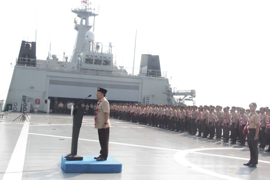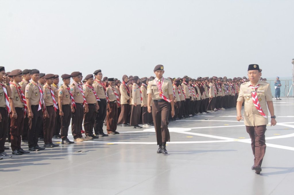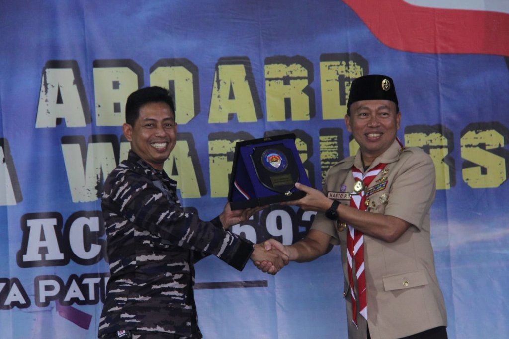 Komandan KRI Banda Aceh-593 Letkol Laut (P) Sulthon Firdaus yang turut serta mengikuti rangkaian menyampaikan apresiasinya kepada anggota Pramuka yang tertib dan disiplin saat on board KRI.