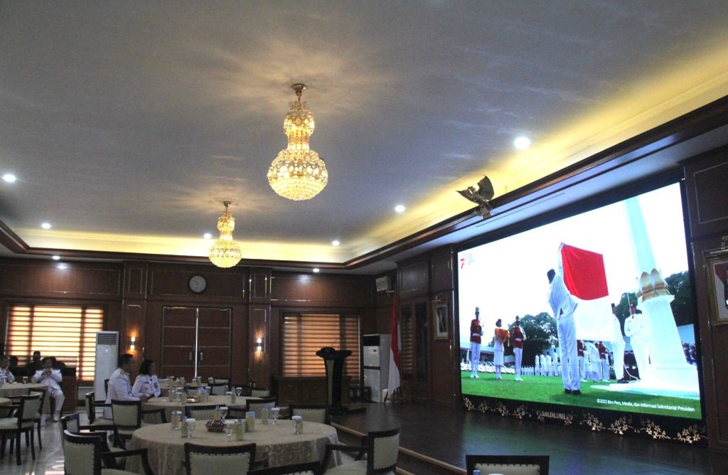 Usai melaksanakan upacara bendera, Panglima Kolinlamil beserta Pejabat Utama dan Kepala Satuan Kerja Kolinlamil selanjutnya menuju Gedung Laut Nusantara untuk menyaksikan rangkaian kegiatan detik-detik Proklamasi yang berlangsung di Istana Merdeka, Jakarta Pusat. (Red-MM)