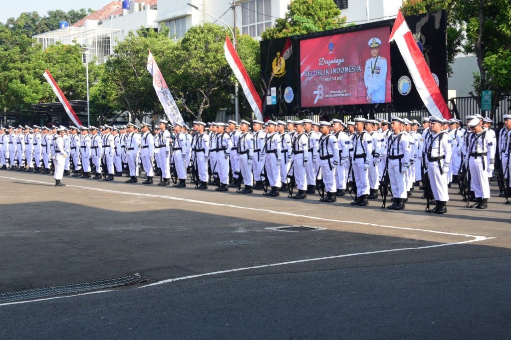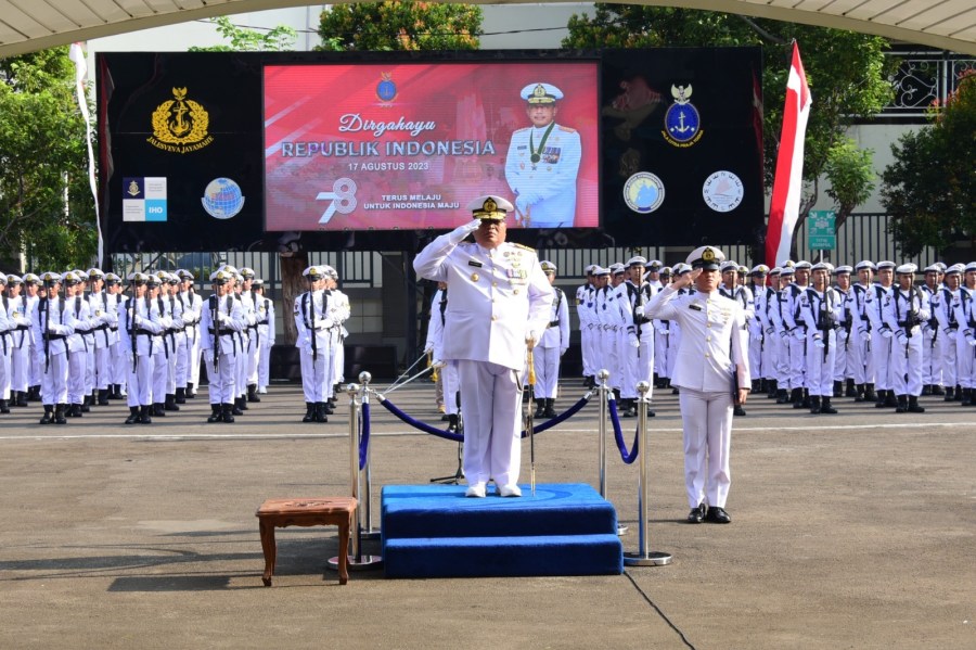 Pusat Hidro-Oseanografi TNI Angkatan Laut (Pushidrosal) menggelar Upacara Hari Ulang Tahun ke-78 Kemerdekaan Republik Indonesia bertempat di Lapangan Apel Mako Pushidrosal, Jakarta Utara, hari ini Kamis, (17/8/2023).