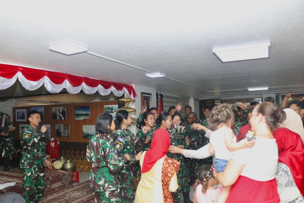 Upacara bendera diikuti oleh Prajurit Satgas MTF, perwakilan Kontingen Garuda dari Naqoura, KBRI Beirut, Dharma Wanita KBRI, dan diaspora Indonesia di Lebanon. Upacara berlangsung khidmat yang dirangkai pemotongan tumpeng dan ramah tamah dengan penuh kekeluargaan sebagai tanda syukur.