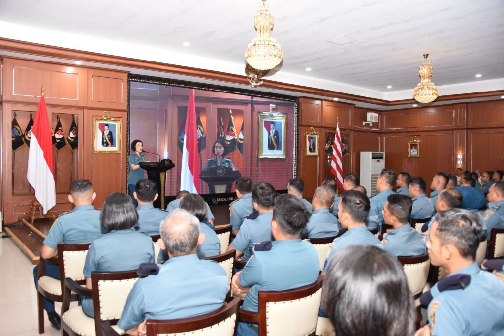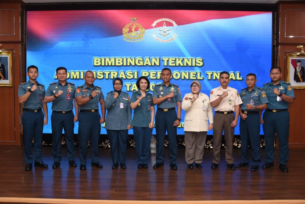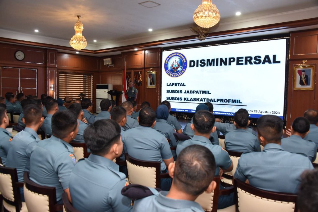 Prajurit dan Pegawai Negeri Sipil Komando Lintas Laut Militer mengikuti kegiatan Bimbingan Teknis (Bimtek) Administrasi Personel TNI Angkatan Laut tahun 2023 dari Dinas Administrasi Personel TNI Angkatan Laut (Disminpersal) yang berlangsung di dua tempat, yakni di gedung Laut Nusantara bagi personel militer, untuk personel PNS dilaksanakan di gedung Laut Natuna, Mako Kolinlamil, Tanjung Priok, Jakarta Utara, Rabu (23/8). Kegiatan yang diselenggarakan oleh Disminpersal ini dipimpin oleh Kasubdis Sahguna Disminpersal Kolonel Laut (S/W) Erna Fauziah.