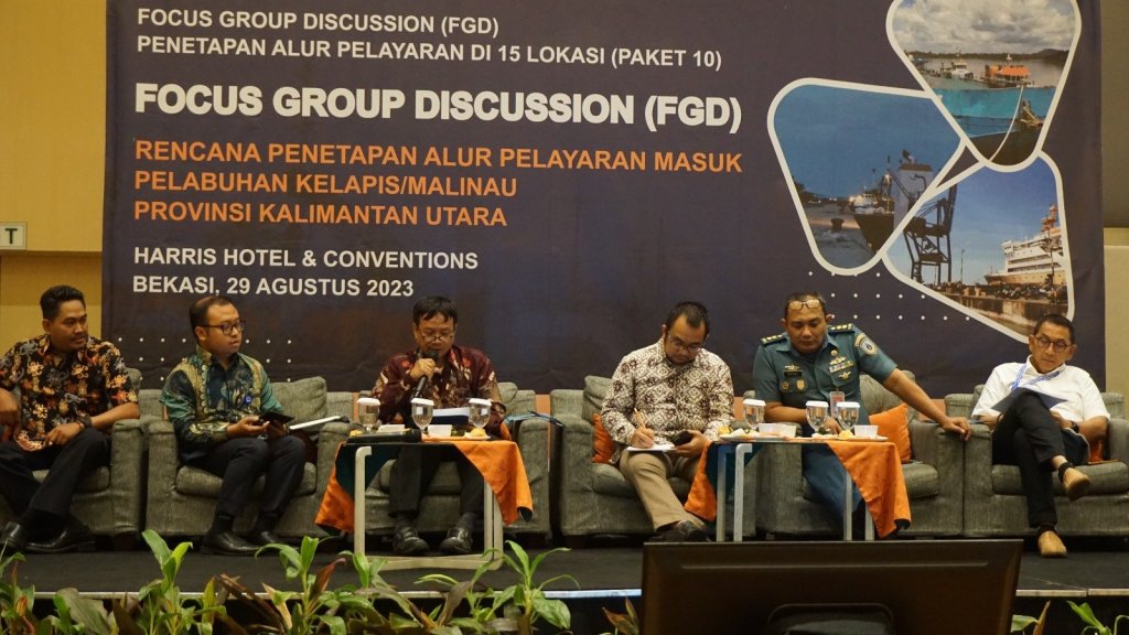 FGD kali ini menghadirkan para narasumber dari Distrik Navigasi navigasi tipe A kelas III Tarakan,, terkait Survey hidro-oceanografi dalam rangka rencana penetapan alur-pelayaran masuk pelabuhan Kelapis/Malinau, Direktorat Kepelabuhanan, terkait dukungan data dan informasi rencana pengembangan pelabuhan Kelapis/Malinau, Pushidrosal terkait pentingnya penggambaran alur-pelayaran masuk pelabuhan Kelapis/Malinau pada Peta Laut Indonesia, dan Direktorat Kenavigasian terkait proses penetapan alur-pelayaran, sistem rute, tata cara berlalu lintas, dan daerah labuh kapal sesuai dengan kepentingannya di alur-pelayaran masuk pelabuhan Kelapis/Malinau.