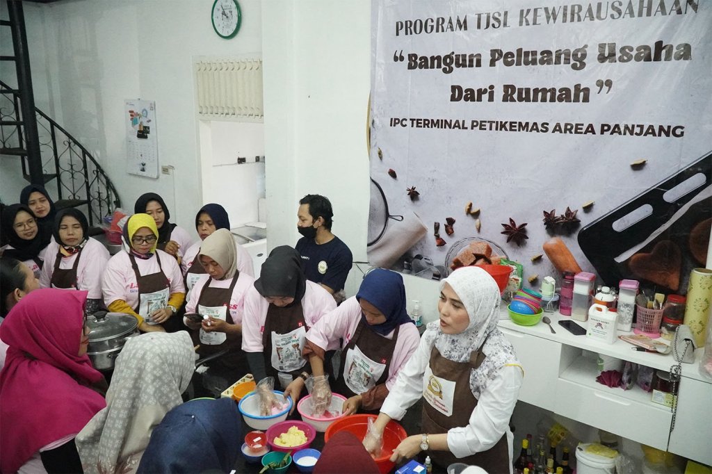 IPC Terminal Petikemas (IPC TPK) mendorong istri Tenaga Kerja Bongkar Muat (TKBM), tenaga kebersihan pelabuhan dan masyarakat sekitar wilayah operasional IPC TPK area Panjang untuk dapat memiliki tambahan pendapatan melalui Pelatihan Kewirausahaan.