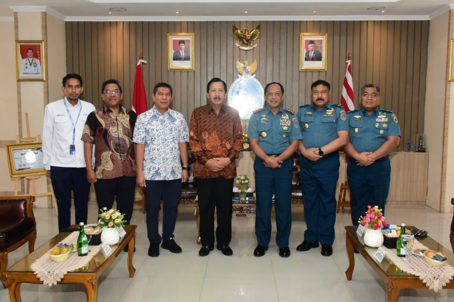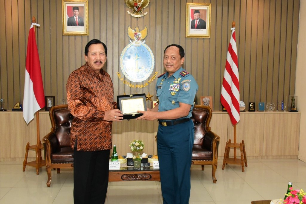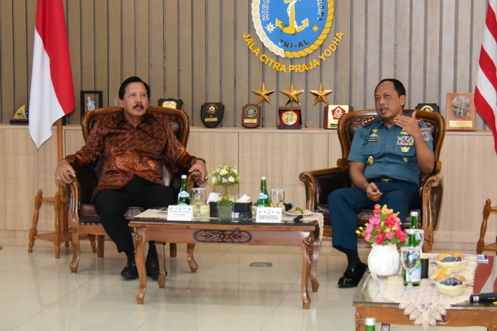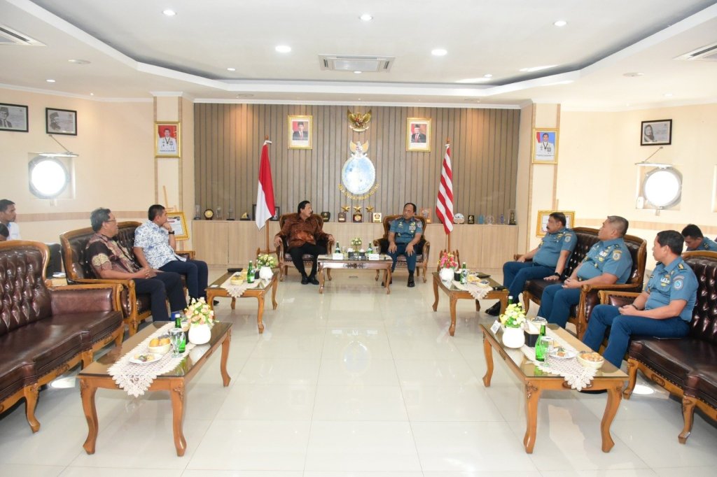 Komandan Pusat Hidro-Oseanografi TNI Angkatan Laut (Danpushidrosal) Laksamana Madya TNI Nurhidayat menerima audiensi Komisaris Utama PT Pelindo Laksamana TNI (Purn) Agus Suhartono, S.E. bertempat di ruang Anjungan Pushidrosal, Jakarta Utara, Senin, (4/9/2023).