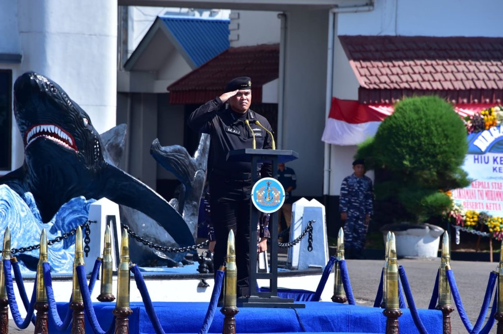 Kepala Staf Angkatan Laut (Kasal) Laksamana TNI Muhammad Ali memimpin Upacara Hari Ulang Tahun (HUT) ke-64 Kapal Selam atau yang lebih populer disebut Hiu Kencana, bertempat di Koarmada II, Surabaya, hari ini Selasa (12/9/2023).