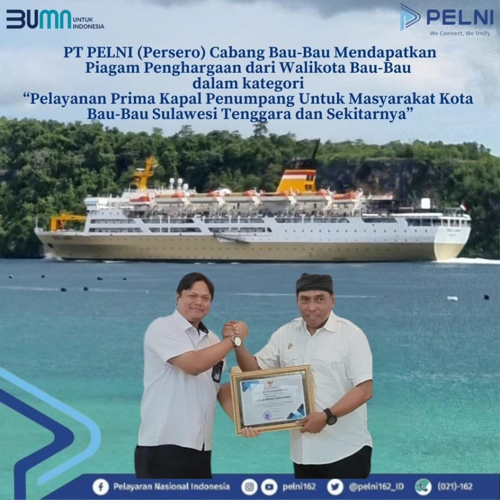 Adapun penghargaan yang berikan Wali Kota Baubau kepada PT Pelni Cabang Baubau Sulawesi Tenggara ini adalah penghargaan kategori pelayanan prima kapal penumpang masyarakat khususnya Baubau dan sekitarnya.