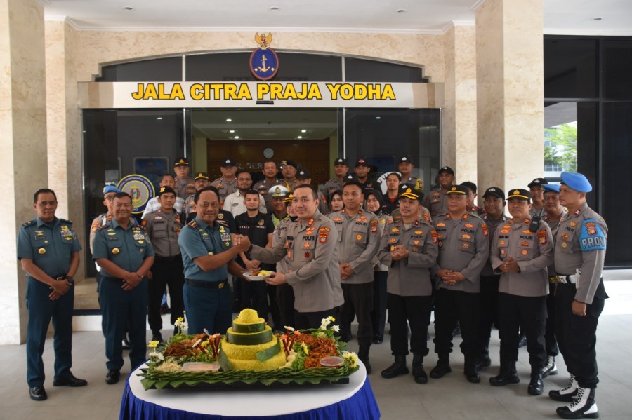 Kedatangan Wakil Kepala Kepolisian Resor (Wakapolres) Metropolitan Jakarta Utara AKBP Wiraga Dimas Tama, S.I.K., M.Si. beserta rombongan dalam rangka memberikan ucapan selamat ulang tahun ke-78 TNI AL yang diterima langsung oleh Komandan Pusat Hidro-Oseanografi TNI Angkatan Laut (Danpushidrosal) Laksamana Madya TNI Nurhidayat didampingi Wadanpushidrosal Laksamana Muda TNI Budi Purwanto beserta beberapa pejabat utama Pushidrosal.