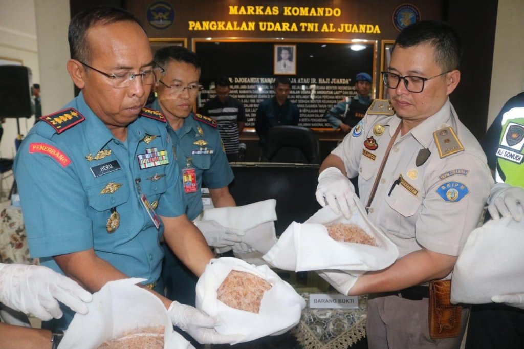 Komandan Lanudal Juanda, Kolonel Laut (P) Heru Prasetyo dalam keterangan persnya menjelaskan, “Lanudal Juanda sebagai leading sector dan koordinator pengamanan di Bandara Juanda yang merupakan bandara enclave civil bekerja sama dengan Angkasa Pura (AP) 1 dan stakeholder lainnya, berhasil menggagalkan upaya penyelundupan BBL dengan tujuan ke Singapura menggunakan Batik Air. Setelah melaksanakan pencacahan oleh BKIPM (Badan Karantina Ikan dan Pengendalian Mutu), barang bukti BBL berjumlah 55.312 ekor dengan perkiraan kerugian negara mencapai Rp.6,9,- miliar.”