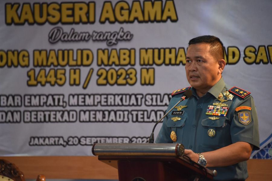 Peringatan Maulid Nabi Muhammad SAW tahun ini mengambil tema “Menebar Empati, Memperkuat Silaturahmi dan Bertekad menjadi Teladan”. Hadir dalam kegiatan tersebut Panglima Kolinlamil Laksda TNI Edwin, S.H., M.Han., M.H., Inspektur Kolinlamil, Pejabat Utama dan Kasatker Kolinlamil, Ketua Gabungan Jalasenastri Kolinlamil Ny. Wenny Edwin beserta para Pengurus Gabungan Jalasenastri Kolinlamil dan prajurit serta PNS Kolinlamil yang beragama Islam.