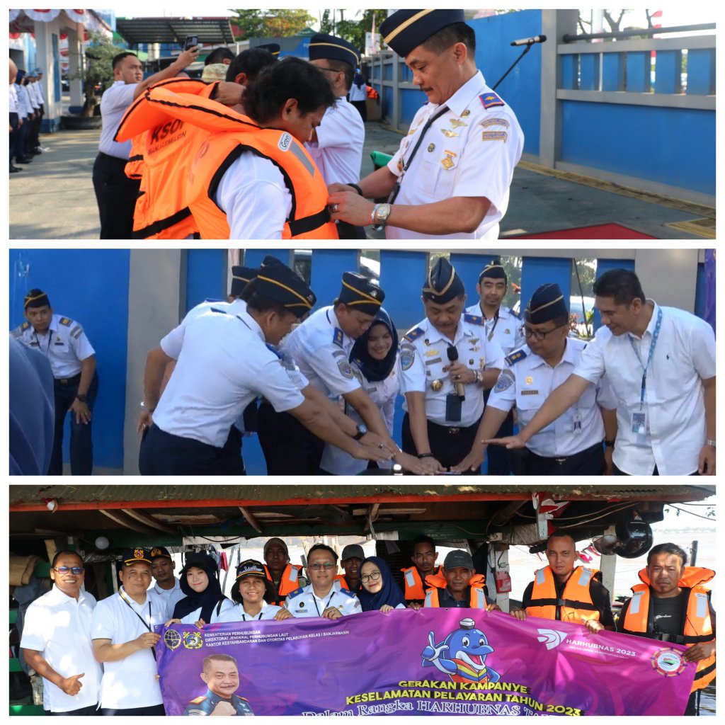 Kementerian Perhubungan Cq Direktorat Jenderal Perhubungan Laut melalui Kantor Kesyahbandaran dan Otoritas Pelabuhan (KSOP) Kelas I Banjarmasin melaksanakan Kampanye Keselamatan Pelayaran dengan memberikan bantuan alat keselamatan kapal secara gratis berupa life jacket kepada awak kapal tradisional di wilayah kerja KSOP Kelas I Banjarmasin yang diawali dengan Pelaksanaan Upacara Bendera di halaman Kantor KSOP Kelas I Banjarmasin, Senin (25/9/2023).