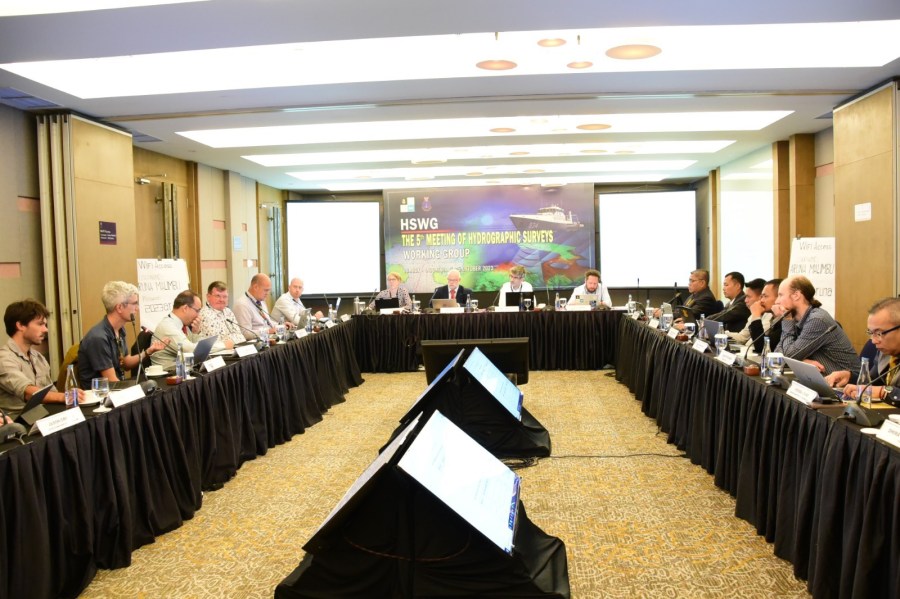 Pertemuan kedua the 5th Meeting of Hydrographic Surveys Working Group (HSWG) membahas terkait publikasi S-44 (standar untuk survey hidrografi) dan C-13 (manual tentang hidrografi) bertempat di Malimbu Meeting Room Aruna Senggigi Hotel, Lombok, Nusa Tenggara Barat, Selasa (3/10/2023).