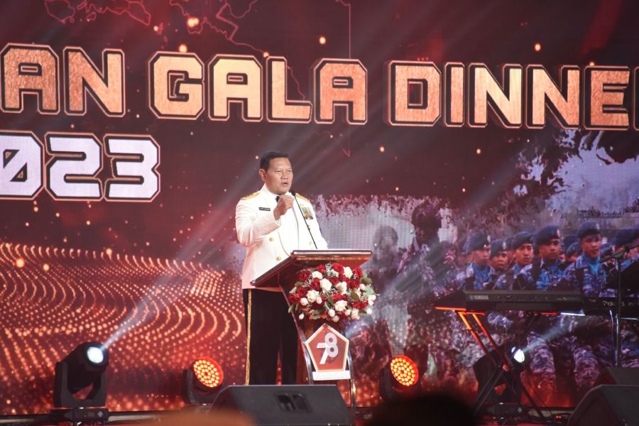 Bertempat di Panti Prajurit, Balai Soedirman, Menteng, Jakarta Selatan, Mabes TNI menggelar acara Komunikasi Sosial Eksekutif (Komsos) dan Gala Dinner sebagai rangkaian kegiatan peringatan Hari Ulang Tahun ke-78 TNI, Selasa (3/10/2023). Puncak acara peringatan HUT TNI tahun ini akan digelar upacara parade dan defile pada tanggal 5 Oktober mendatang di silang Monas, Jakarta Pusat.
