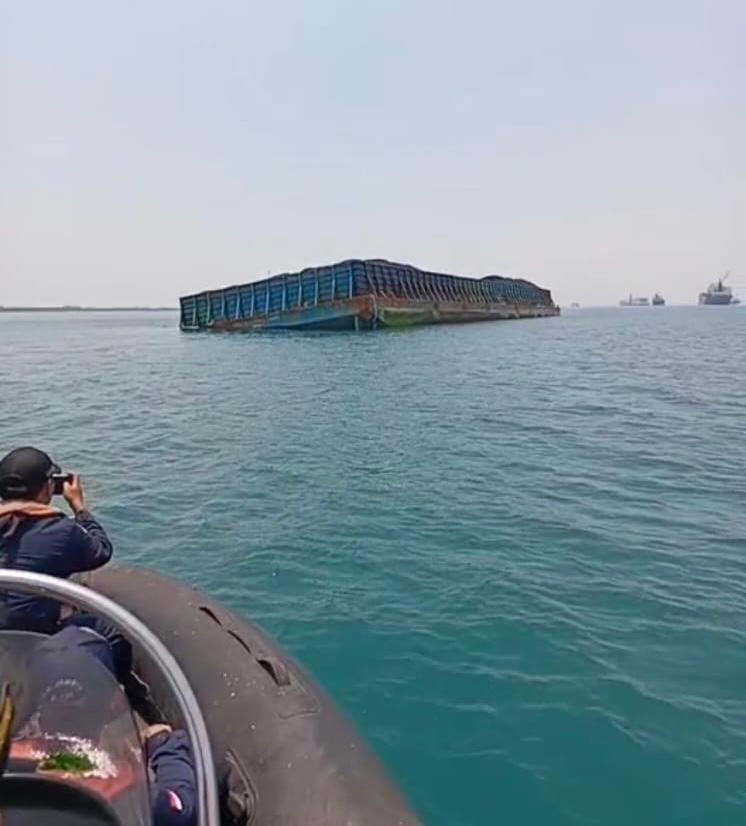 Kapal tersebut Nakhodanya atas nama Arif Aminuddin Septian dan sebanyak 11 orang ABK, kronologis kejadiannya disebabkan karena cuaca kurang baik, angin kencang dan gelombang laut tinggi, sehingga memaksa beban mesin utama over dan rusak, mengakibatkan tongkang bocor dengan miring.