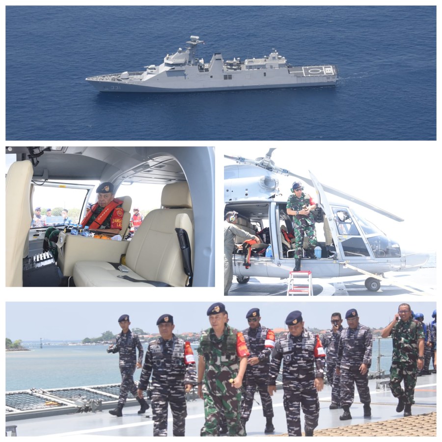 Usai memberikan pengarahan, Pangkoarmada II kembali menuju KRI Radjiman Wedyodiningrat-992 sebagai Kapal Markas unsur Satgasla menggunakan Heli AS 565 MBe Panther HS-1311.(Red-MM).