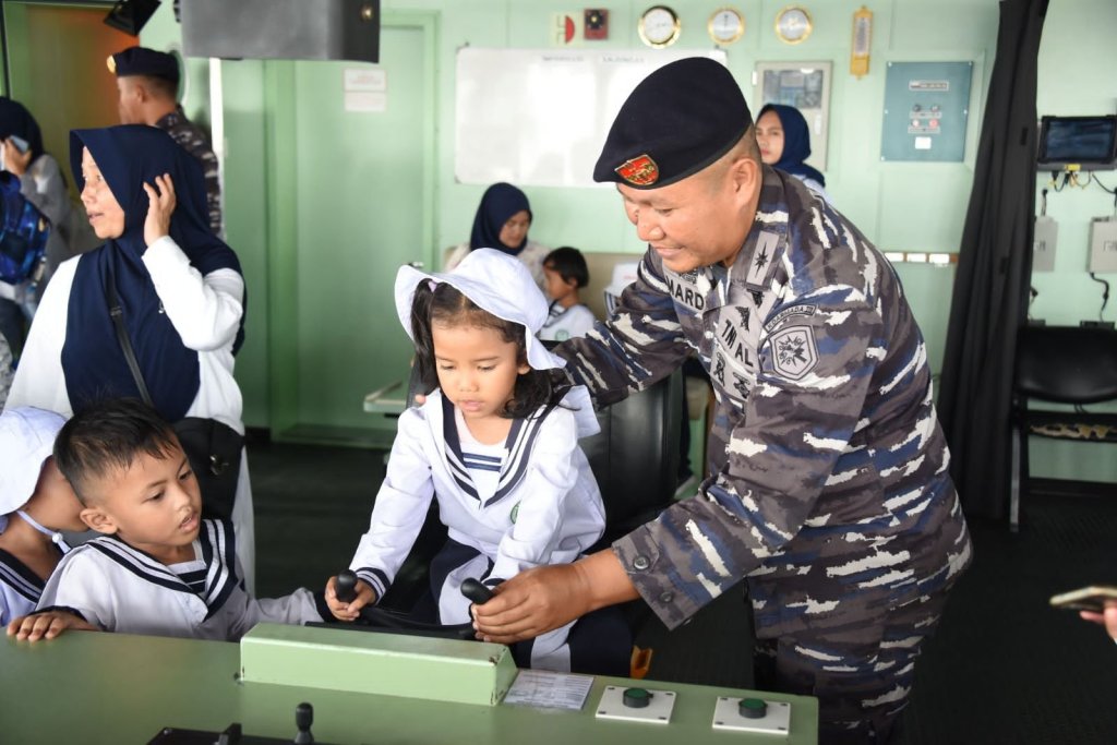 Kesempatan tersebut dimanfaatkan oleh siswa-siswi TK Alam Layung Indah untuk melihat langsung teknologi yang ada di kapal perang sekaligus merasakan berbagai fasilitas yang ada di dalamnya.