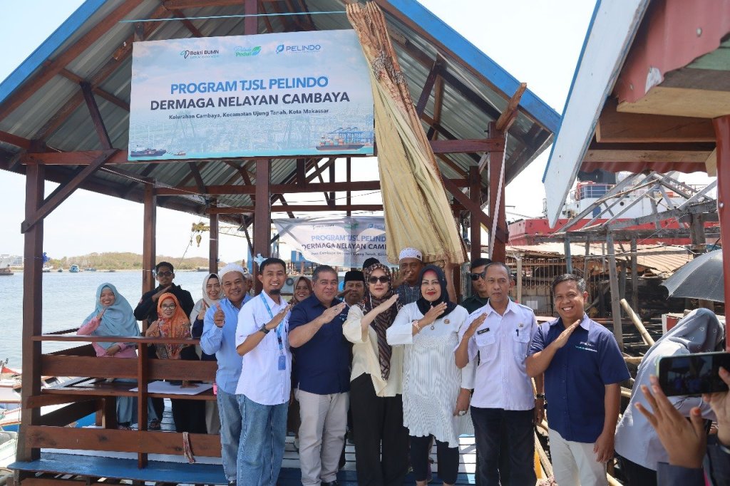 PT Pelabuhan Indonesia (Persero) Regional 4 melalui Program Tanggung Jawab Sosial dan Lingkungan (TJSL) menyerahkan bantuan berupa pembangunan Dermaga Nelayan di RT 001 RW 002 Kelurahan Cambaya, Kecamatan Ujung Tanah, Kota Makassar, Sulawesi Selatan, Rabu (18/10/1023)