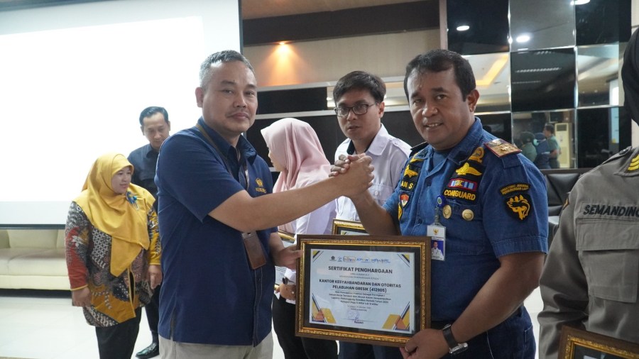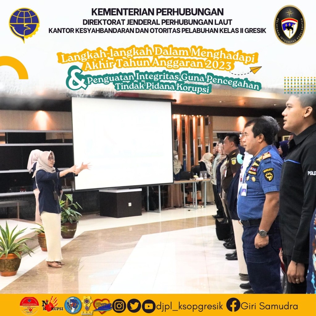 Satuan Kerja Kantor Kesyahbandaran dan Otoritas Pelabuhan Kelas II Gresik mendapatkan penghargaan sebagai Satker Tercepat Dan Akurat Dalam Penyampaian Laporan Pertanggung Jawaban Periode 2023 Kategori 5 Miliar S.D. 15 Miliar.