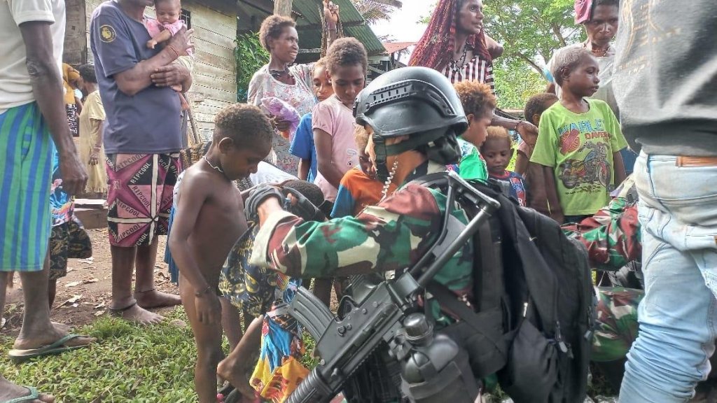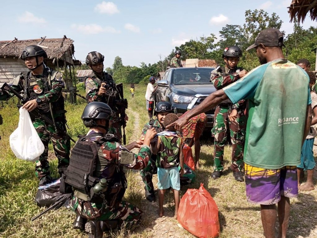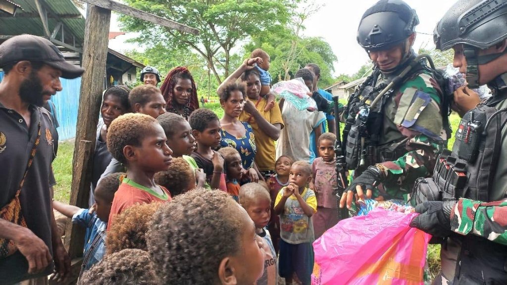 Satgas Pamtas Mobile RI-PNG Yonif 7 Marinir Satgas Gobang beserta seluruh Pos Marinir secara serentak turut serta memeriahkan HUT ke 78 Korps Marinir dengan melaksanakan bakti sosial berupa pemberian sembako, pakaian anak-anak dan pengobatan terbatas terhadap masyarakat di wilayah sekitar Pos Marinir di Distrik Dekai Kabupaten Yahukimo, Senin (13/11/2023) lalu.