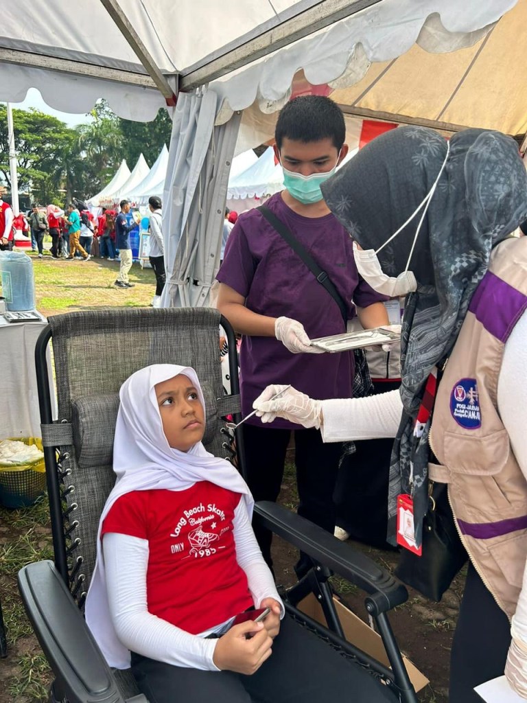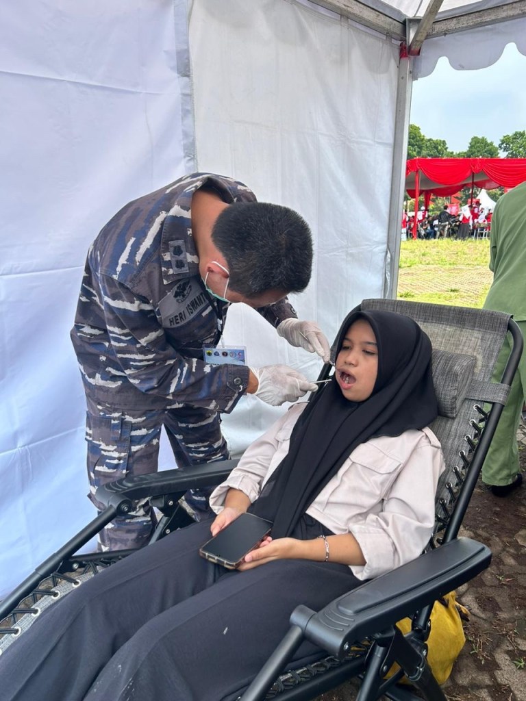Dalam rangka memperingati Hari Kesehatan Nasional ke-59, TNI Angkatan Laut (TNI AL) mengerahkan klinik gigi mobile (mobile dental service) dari Lembaga Kedokteran Gigi (Ladokgi) TNI AL, serta memberikan pelayanan pemeriksaan dan perawatan gigi secara gratis pada kegiatan Bakti Sosial bertempat di Lapangan Prawatasari Cianjur, Sabtu (18/11/2023).