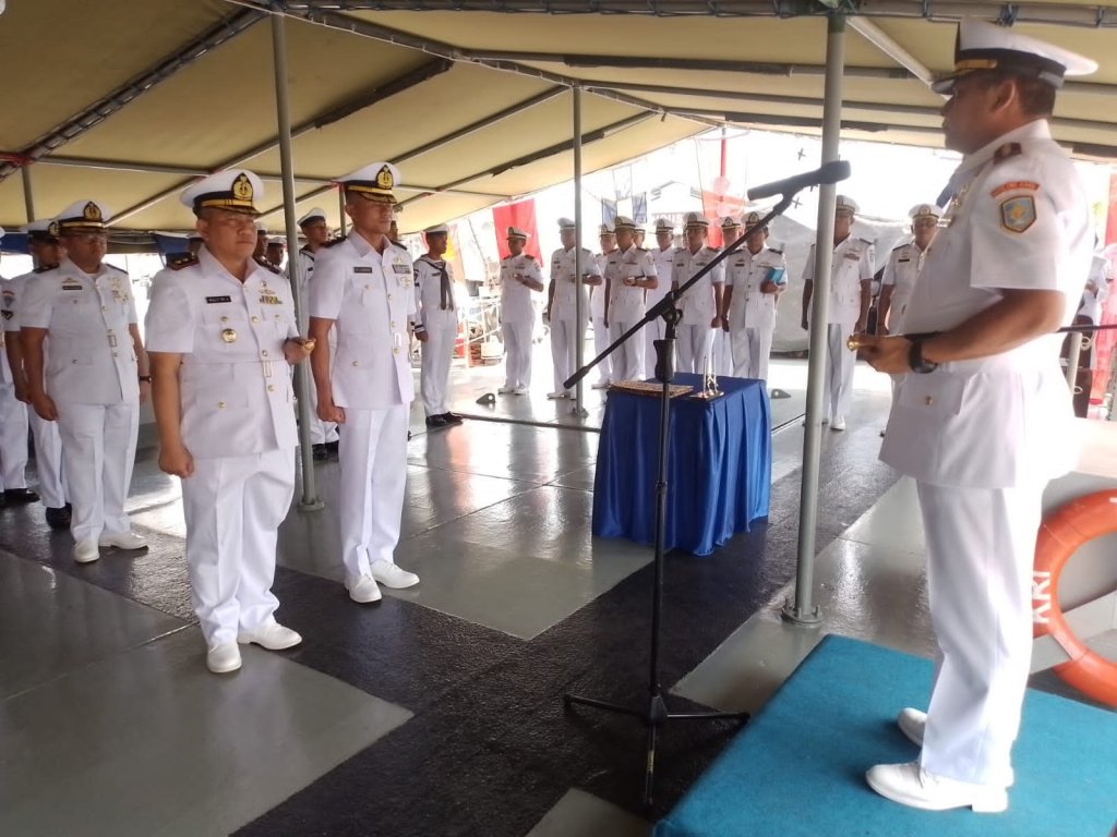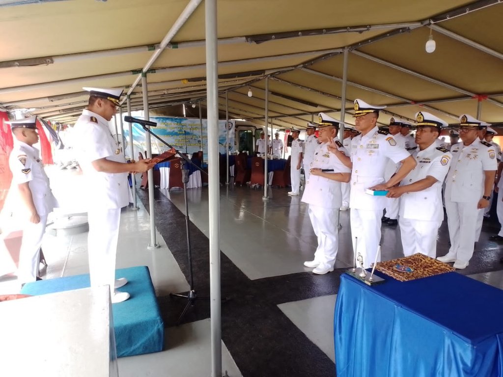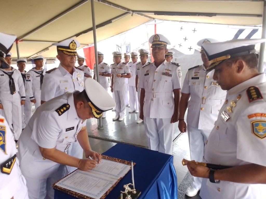 Komandan Kapal Perang Republik Indonesia (KRI) Teluk Lampung-540 yang berada dibawah jajaran Satuan Lintas Laut Militer (Satlinlamil) 2 Surabaya resmi diserahterimakan dari pejabat lama Letkol Laut (P) Rully Tri Anggoro kepada pejabat baru Letkol Laut (P) Ronald Ernest Lengkong, S.T.,M.Tr.Opsla, Senin (11/12/2023).