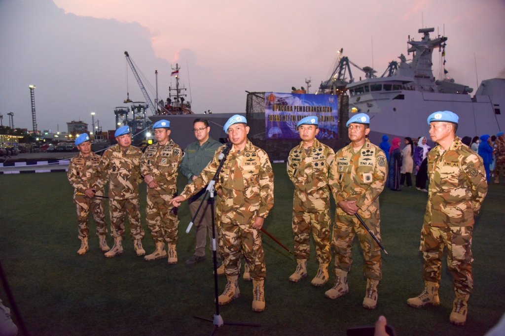 Keberangkatannya dilepas langsung oleh Panglima TNI Jendral TNI Agus Subiyanto didampingi Kepala Staf Angkatan Laut (Kasal) Laksamana TNI Dr. Muhammad Ali di Dermaga Kolinlamil, Tanjung Priok, Jakarta Utara, Senin (11/12/2023).