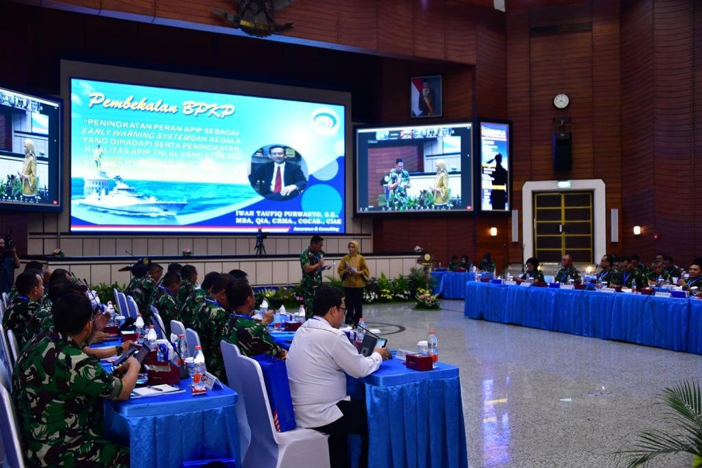 Rangkaian kegiatan pembekalan meliputi pembekalan Badan Pengawas Keuangan dan Pembangunan (BPKP) Peningkatan Peran APIP sebagai Early Warning System oleh Deputi Kepala BPKP Bidang PIP Bidang Polhukam PMK Iwan Taufiq Purwanto, Penyampaian Hasil Sinkronisasi Program Kerja Pengawasan Tahunan (PKPT) oleh Kolonel Laut (P) Sumartono, paparan Doktrin dan Jukgar Pengawasan Intern oleh Kolonel Laut (K) Dr. Acep Maksum, Format Penulisan Laporan Hasil Audit (LHA) oleh Kolonel Laut (S) Dr. Yohanis Basang, serta pembekalan oleh Irjenal.