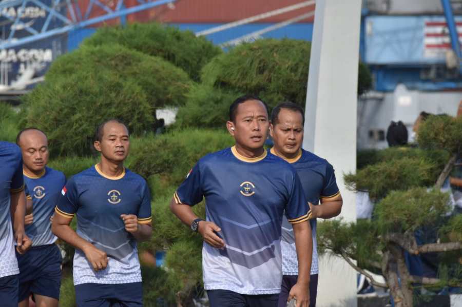 Panglima Kolinlamil dengan penuh semangat memimpin olah raga bersama prajurit dan PNS Kolinlamil dengan berlari keliling Kesatrian Mako Kolinlamil, Tanjung Priok, Jakarta Utara.